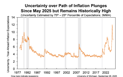 Labor Market – Looking at the labor market, the July jobs reports, published in early August, stunned investors when nonfarm payrolls (73,000) fell well below expectations (100,000) and data for May and June was significantly revised downward. The revised figures showed nonfarm payrolls declined in June, marking the first negative change since 2020. Annual revisions to nonfarm payrolls were also published in September for the year ending in March 2025, with jobs added adjusted downward from initial estimates by 911,000. These trends point to a weaker labor market than initially thought and contributed to volatility over the quarter as markets began to price in interest rate cuts.