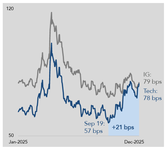 Exhibit 4: Investment Grade (IG) Index vs. IG Tech Spreads