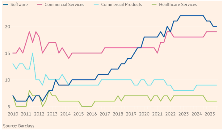The credit markets are flashing similar signals of excess and late cycle behavior. The biggest AI players are spending at eye-watering levels to build out infrastructure, and they are increasingly borrowing to do it. These companies have historically had fortress balance sheets and ratcheting up debt issuance will naturally reduce the quality of their financial statements. Some hyperscalers, like Meta, are even using Special Purpose Vehicles to keep debt off their balance sheets – a type of financial engineering that is classic late cycle behavior. While some of these trends may raise eyebrows, including increasing investment grade spreads in the tech sector, illustrated in Exhibit 4, late cycle doesn’t mean sell everything. Stages of the business cycle can last longer than anyone expects, but it does warrant attention from investors with February’s market rotation serving as a preview. Investors are already quietly repositioning toward tomorrow’s opportunities, but the playbook here isn’t to chase what has been hot, but rather to stay anchored to valuations and think about where you want to be when the cycle turns.